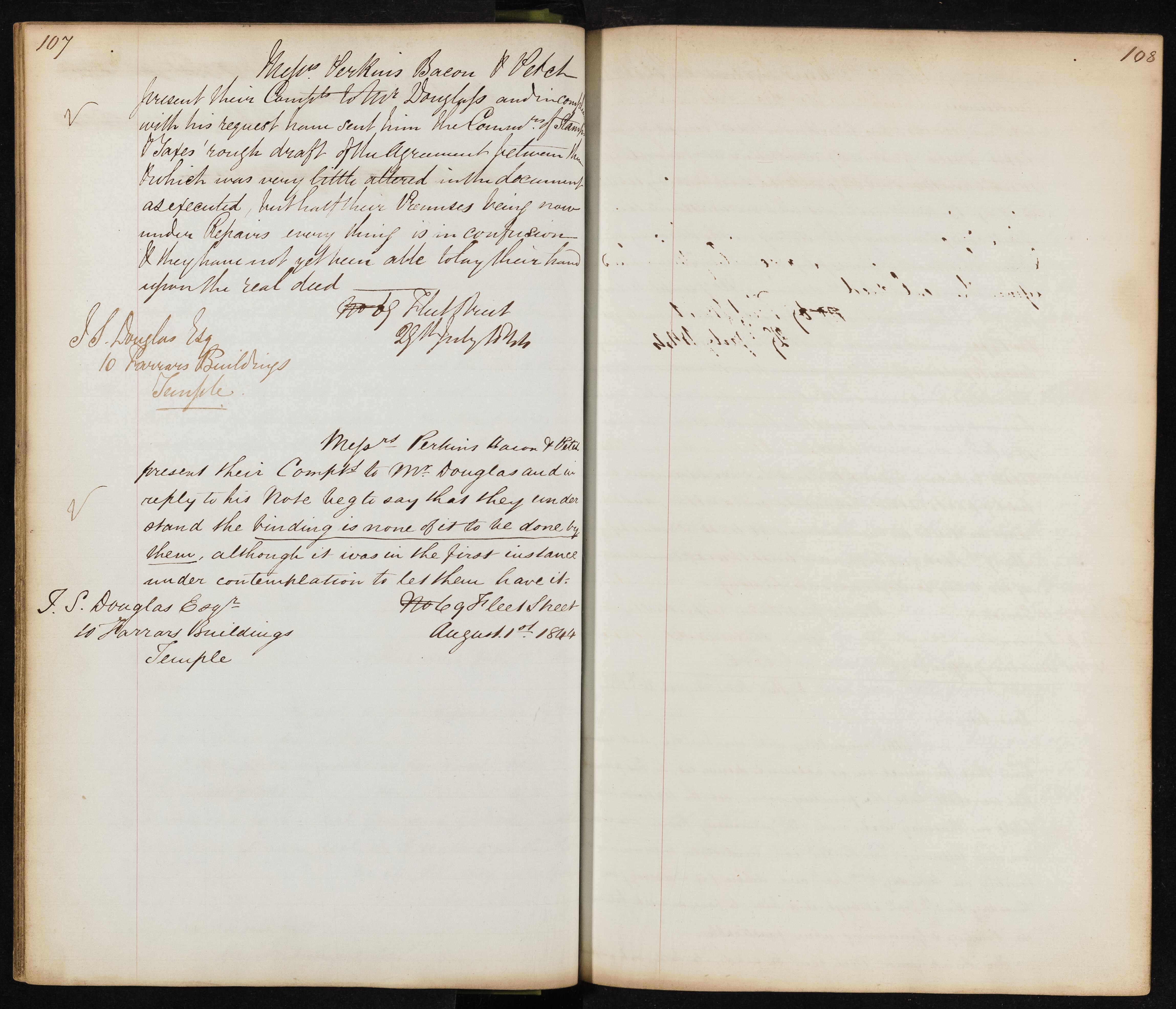Summary: Messrs Perkins Bacon & Patis respond to Mr Douglas's note, clarifying that the binding is not to be done by them, although it was initially considered to be provided by them.