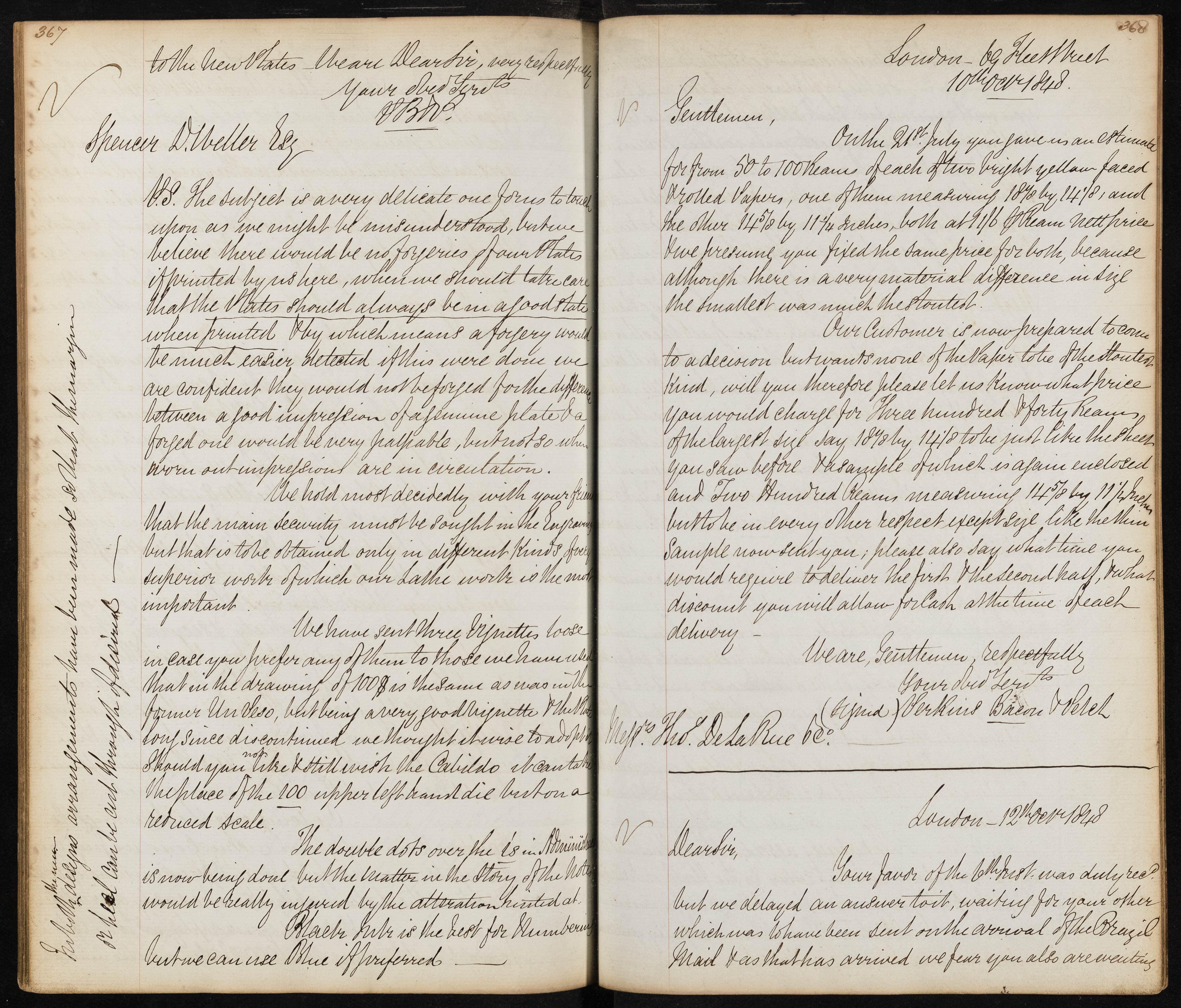 Summary: The letter discusses concerns about forgery of plates and the importance of maintaining good note quality to detect forgeries. It mentions sending three dignettes and considerations about superior work for security.