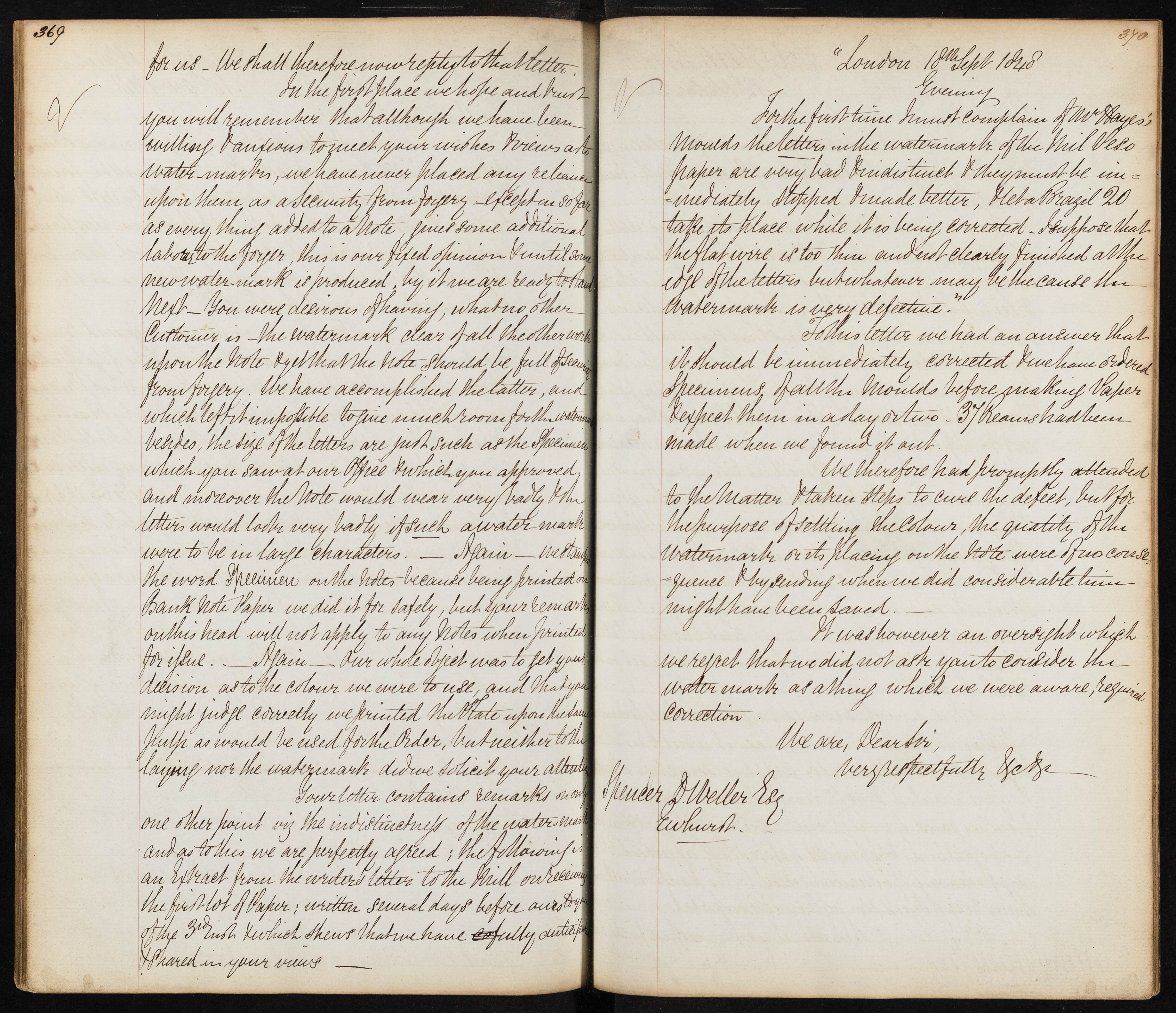Summary: The letter discusses concerns about the indistinctness and defects in the watermark of the paper, steps taken to correct these defects, and the importance of watermark quality for security against forgery.