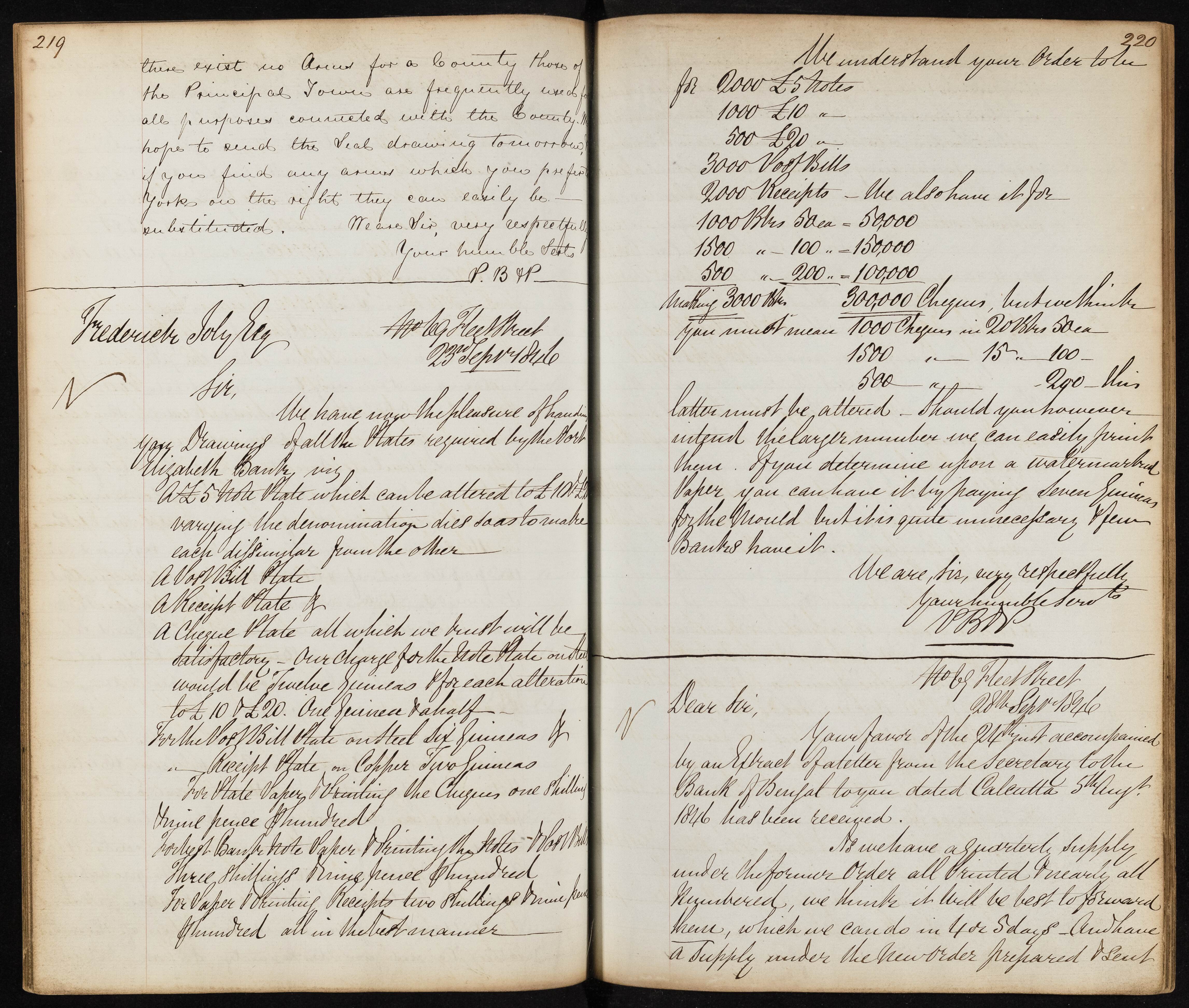 Summary: The sender discusses the order for various printing plates including receipt plates, cheque plates, and bill plates, detailing charges and quantities. They mention the possibility of watermarking and alterations to the order.