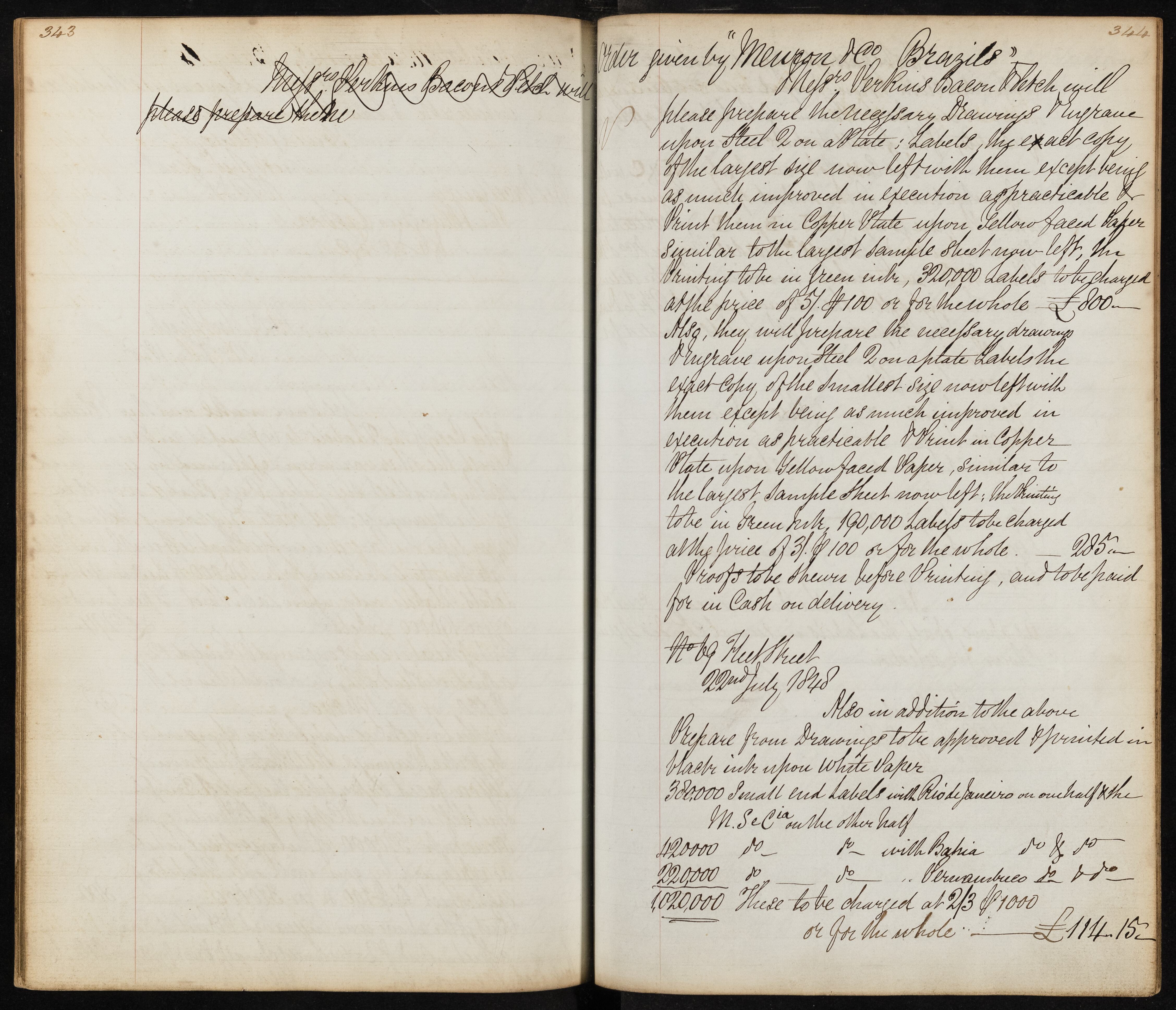 Summary: Instructions for preparing and printing various sizes of labels on copper plates, specifying quantities, colors, prices, and delivery terms.