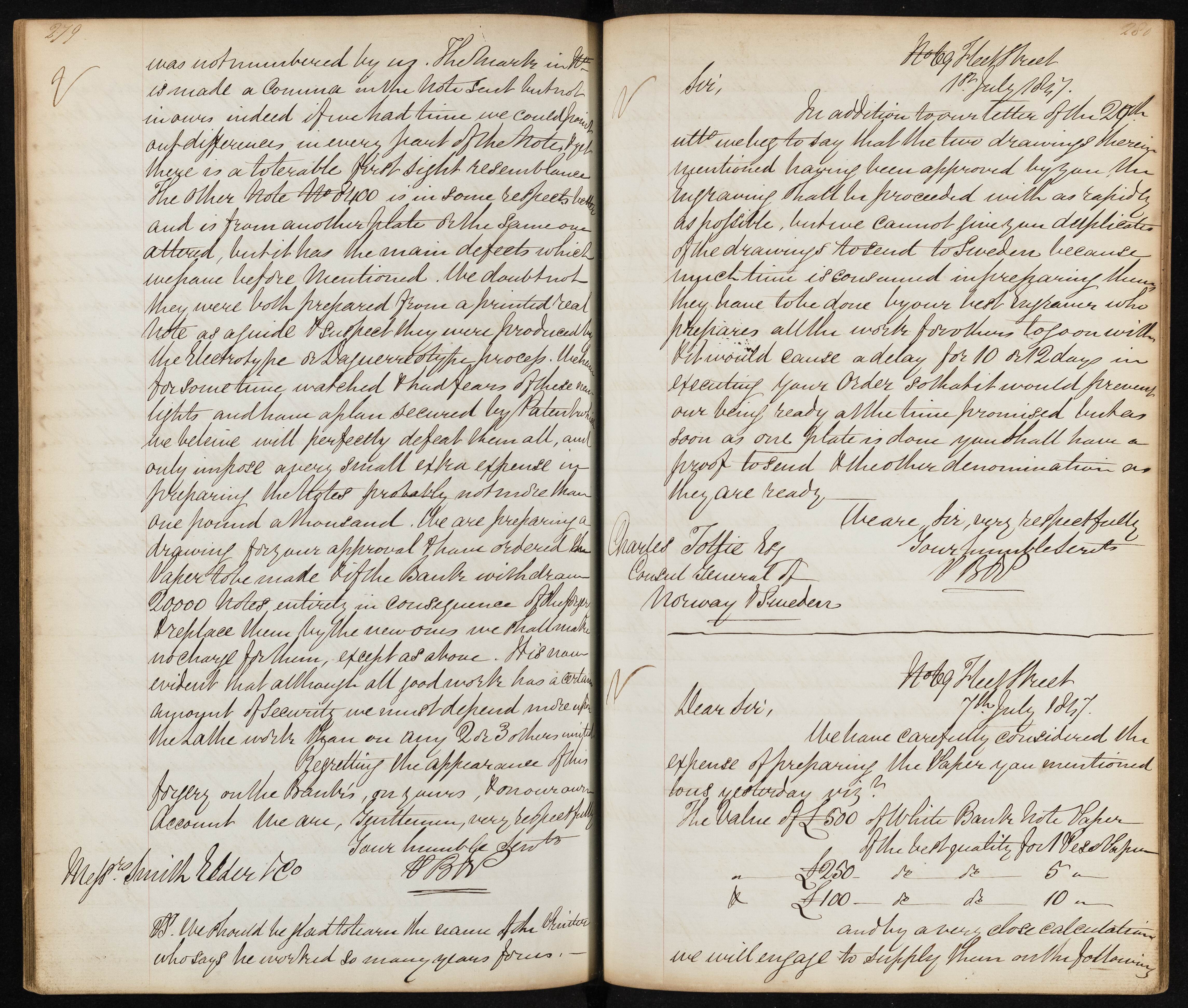 Summary: The letter considers the expense of preparing bank note paper, specifically the value of £500 of white bank note paper, and commits to supplying it based on a close calculation.