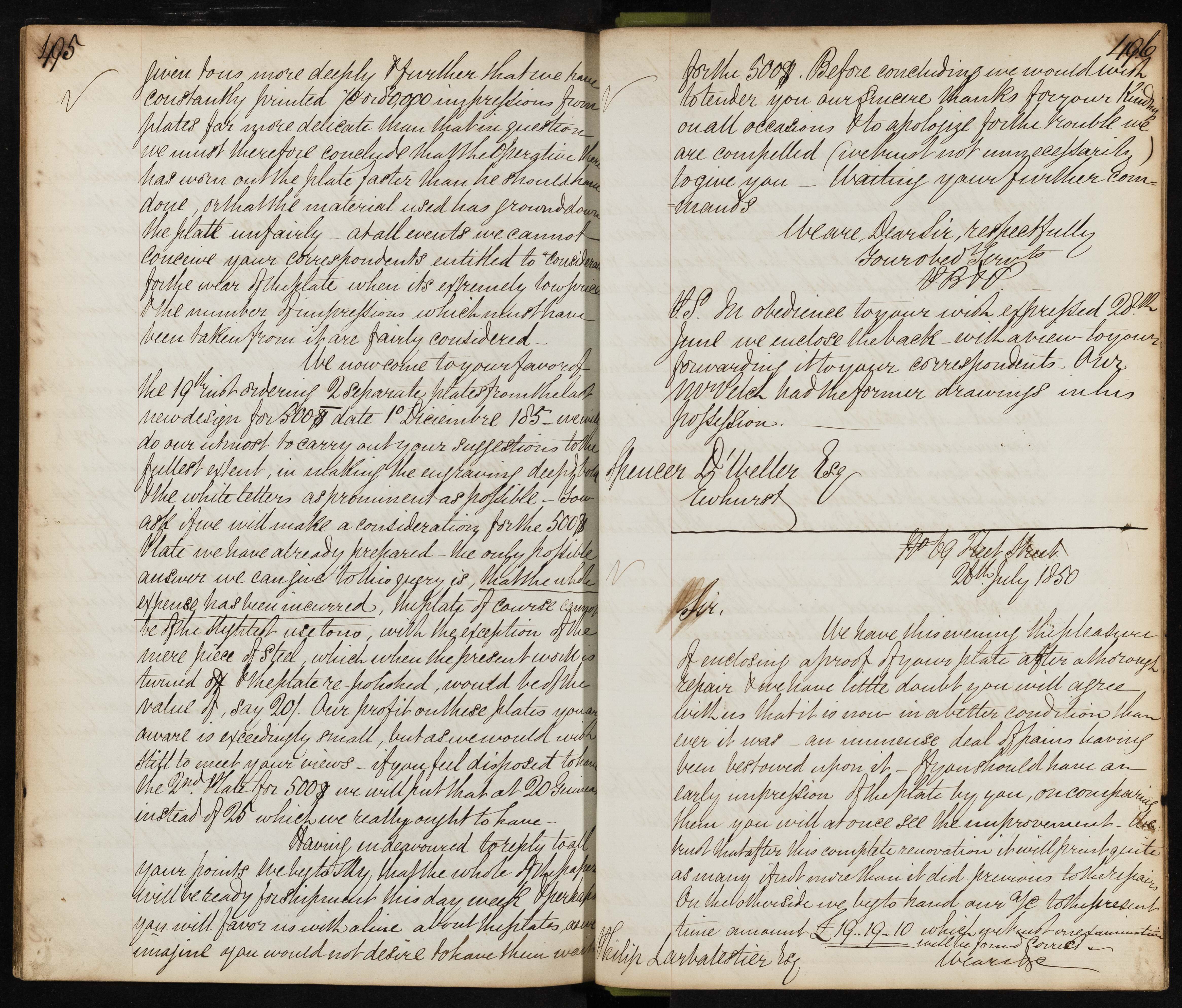 Summary: The letter discusses the wear and repair of printing plates, the number of impressions made, and the efforts to meet the recipient's requests. It mentions a proof of the plate after thorough repair and expresses confidence in its improved condition.