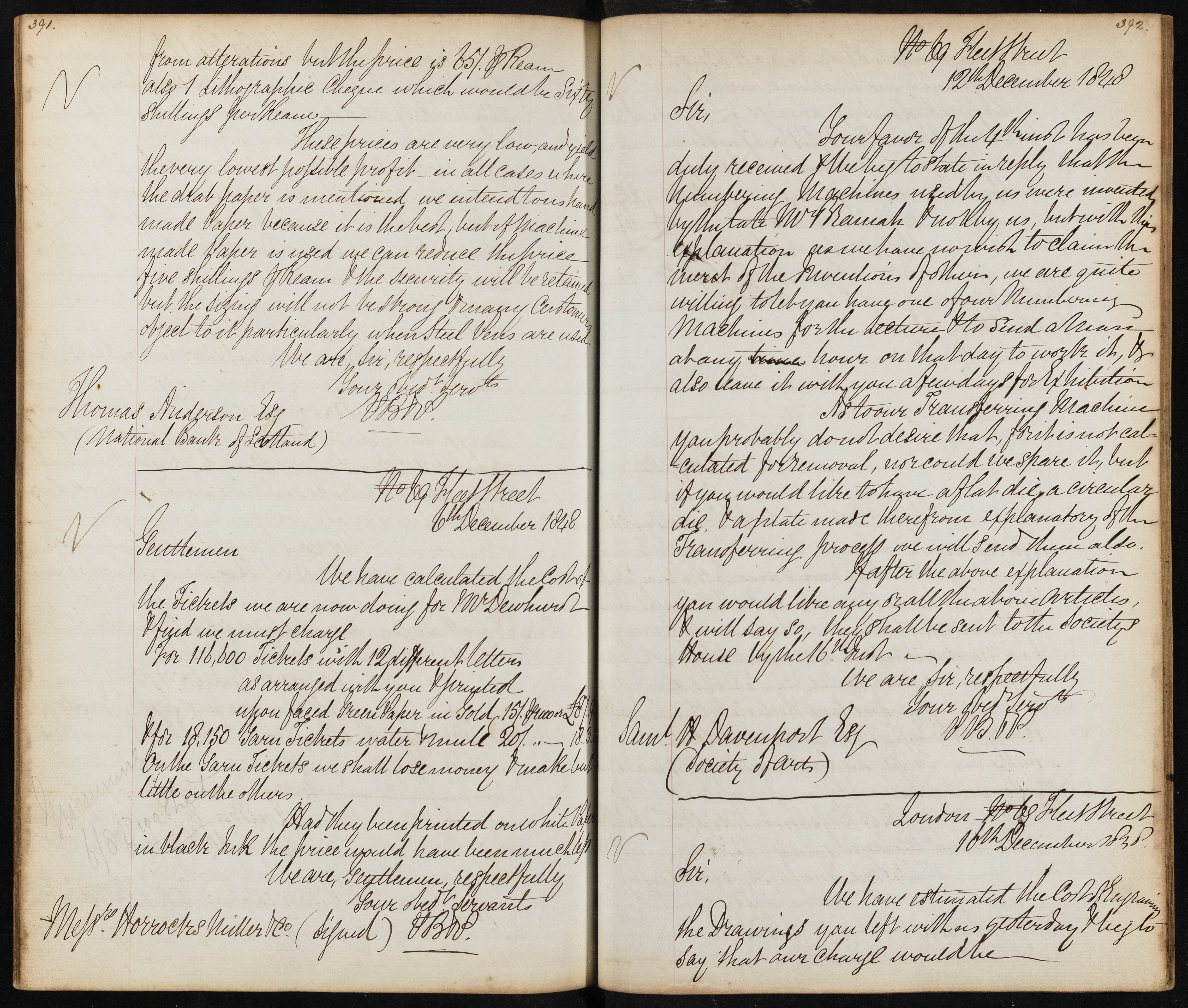 Summary: Thomas Bridgestone discusses pricing related to lithography and paper quality, emphasizing the use of machine-made paper to reduce costs while maintaining security and quality.