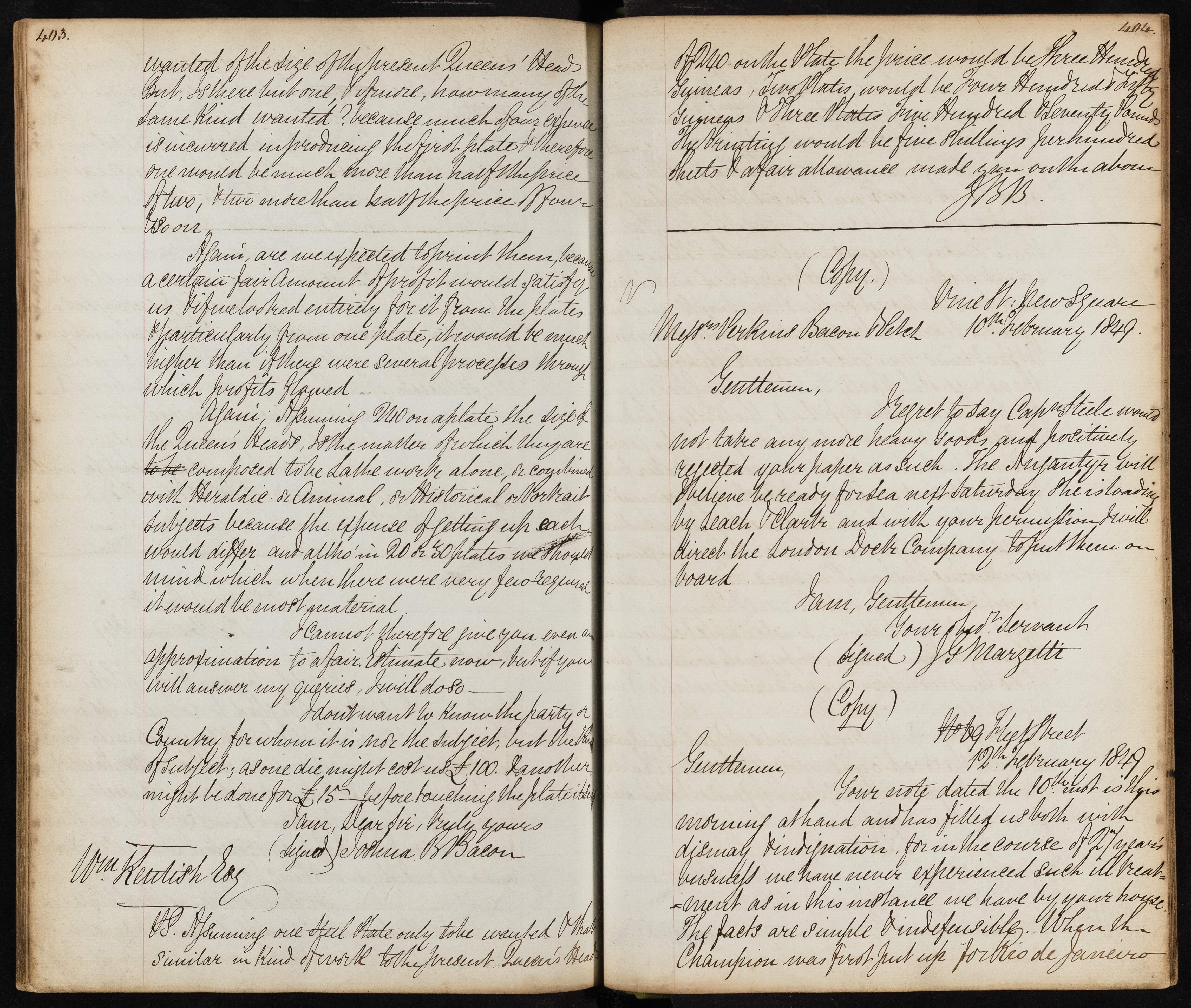 Summary: JG Margetti informs the gentlemen that they will not take any more heavy goods and mentions arrangements for the London Doel Company to handle deliveries.
