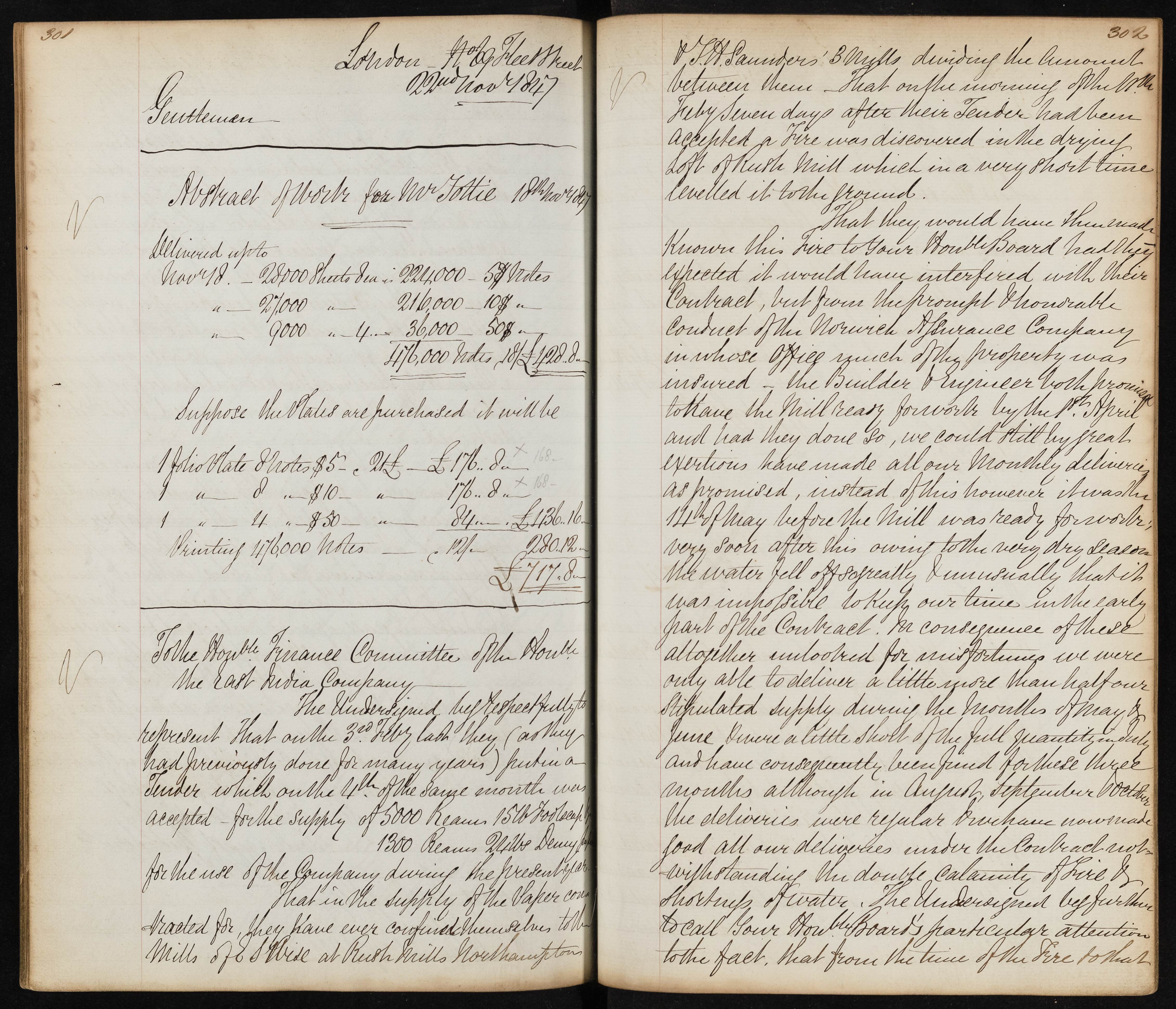 Summary: The undersigned report that they submitted a tender on 3rd February which was accepted on 4th. A fire destroyed Rush Mill shortly after, delaying production. Despite this, efforts were made to fulfill the contract with some delays and fines incurred.